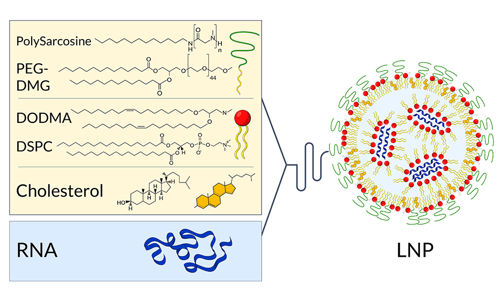 You don’t need to have a degree in organic chemistry or understand the molecular interactions to understand what these do. In simple terms, they are a mixture of fat molecules which form a microscopic bubble of oil that surrounds the mRNA. This helps the fragile mRNA travel through the body without being degraded by enzymes. It also helps it easily get handed off to cells in your body4.
